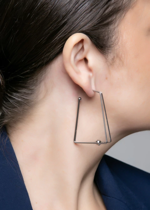 Brinco Argola Triângulo com Esfera – Design Geométrico e Contempôreaneo